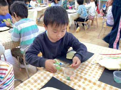 どんな材料を使って、どんなふうに作るか・・・時には友達や保育者に相談しながら進める姿が見られました。
