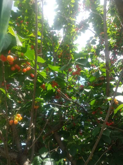 「もっとたくさんいるんじゃない?!」という声が子どもから上がったので、保育者が木からさくらんぼを収穫。こんなにたくさん取れました!!