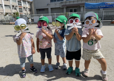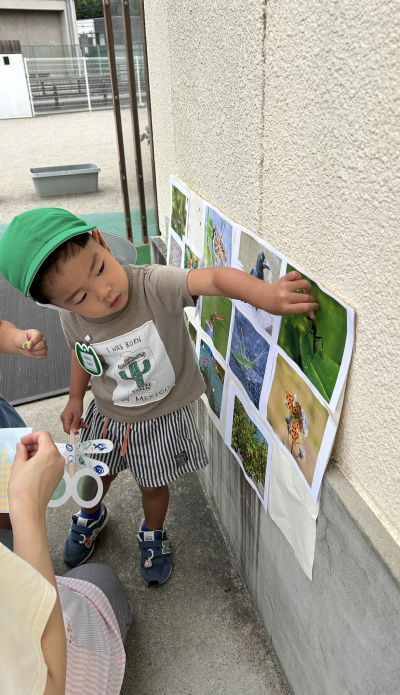 「みんなで作ったとんぼメガネで見つけよう!」と子どもたちが思いついてメガネを持っていきました👓