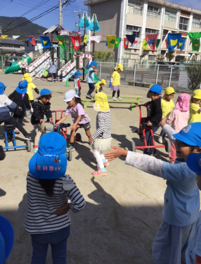 いろいろなクラスのリズムや競技をやってみたり、他のクラスの子に教えたりしてのびのびと運動会ごっこを楽しむことができました🤗