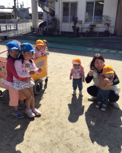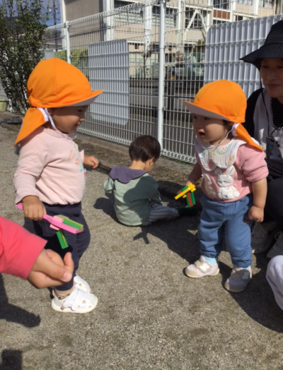 三輪車をもとの位置に戻す先生の役を手伝ってくれる子もいましたよ🤗