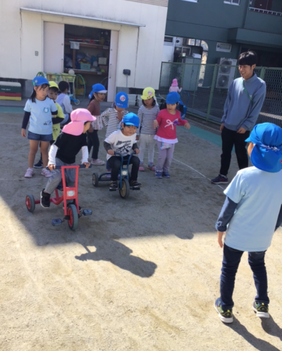 三輪車をもとの位置に戻す先生の役を手伝ってくれる子もいましたよ🤗