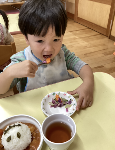フレンチサラダの中にも人参のおばけたちが隠れていましたよ🙈