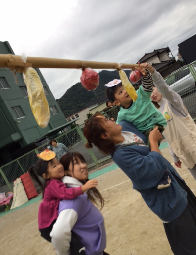 続いてはお家の方と協力してフルーツ狩りです🍎