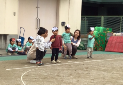 少し前から大きいクラスの運動会ごっこを見たり参加して、運動会ごっこの雰囲気を感じる経験をたくさんしていました。