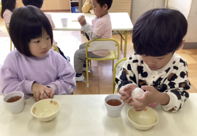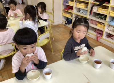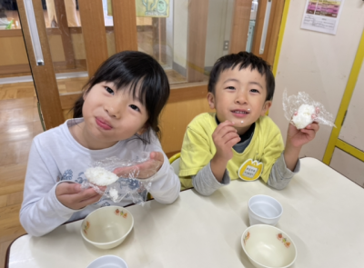 おやつの時間には自分でおにぎりを握って食べました🍙