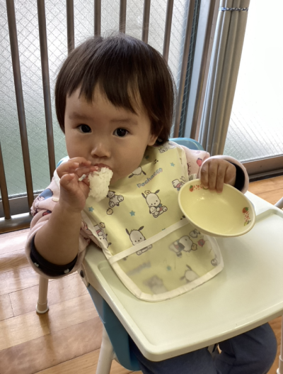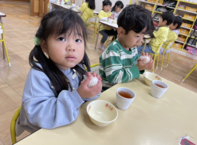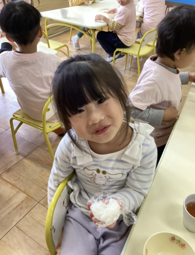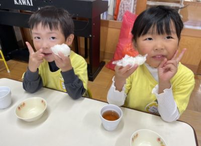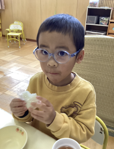 新米のおいしさを味わえるよう、15時のおやつに新米おにぎりがでました😋