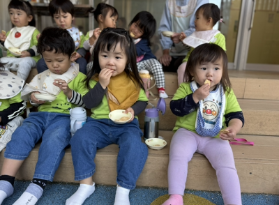 小さいクラスは各年齢に合わせてゆったりとお散歩やお弁当を楽しむことができました🐤