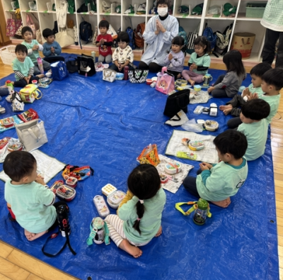 小さいクラスは園周辺をお散歩し、園に戻ってお弁当を食べました😋