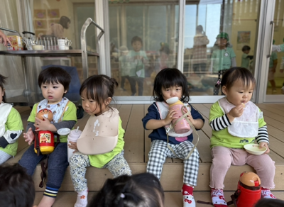 小さいクラスは各年齢に合わせてゆったりとお散歩やお弁当を楽しむことができました🐤