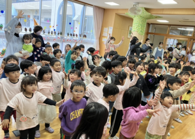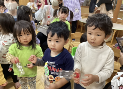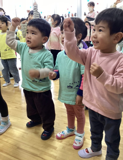 小さいクラスは自分たちで作ったマラカスなどの楽器を鳴らして楽しい雰囲気が盛り上がりました。