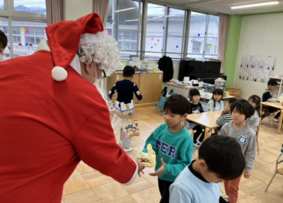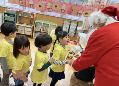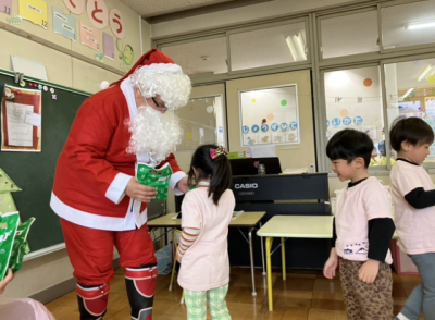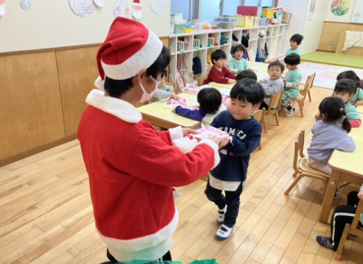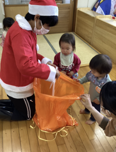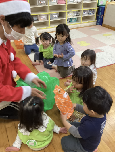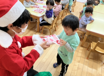 大きいクラスは各クラスにサンタさんがきてくれ、一人一人プレゼントをもらいました。