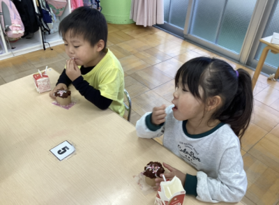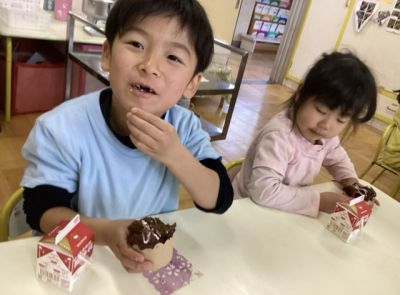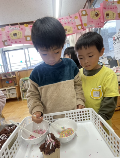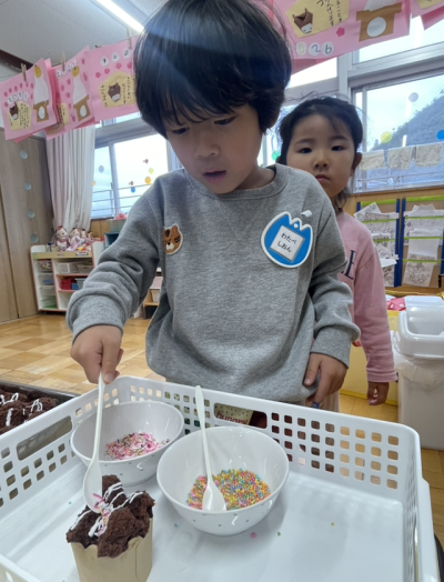 大きいクラスは自分でチョコスプレーをトッピングしました🥄