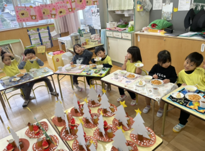 給食とおやつもクリスマスの雰囲気を感じるメニューでした✨
