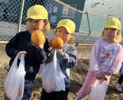 園駐車場となりの畑で、はっさく狩りをさせていただきました🍊