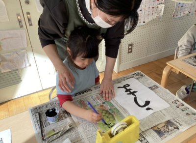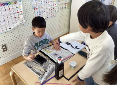 書き初めは、新年になって初めて筆で絵や文字を書くお正月行事です🍊
