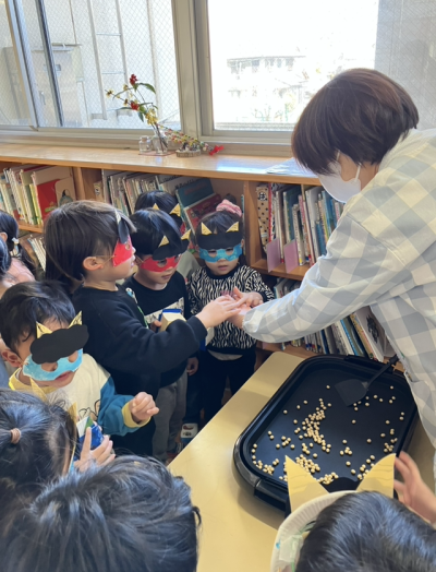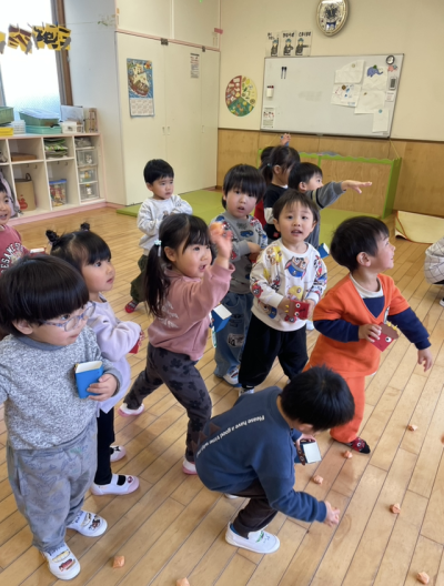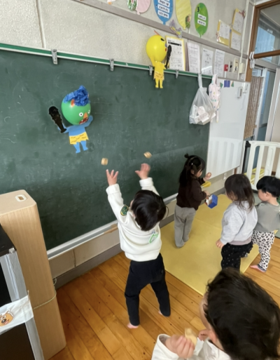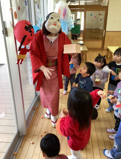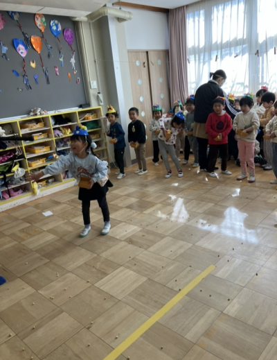 みんな力強く豆を投げていました。