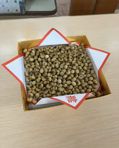 朝、園長先生が豆まきに備えて豆を炒ってくれました。
