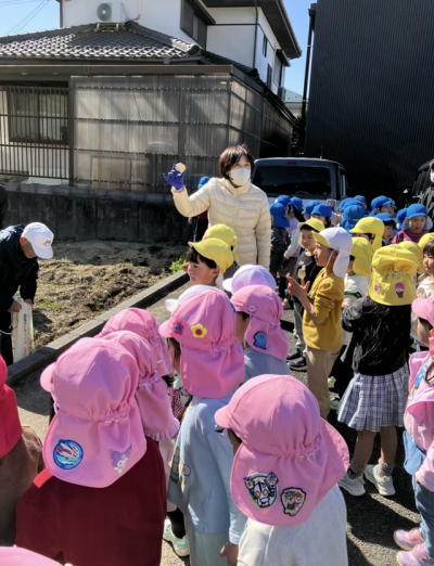 畑先生から苗植えの仕方についてお話を聞きました。