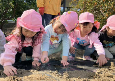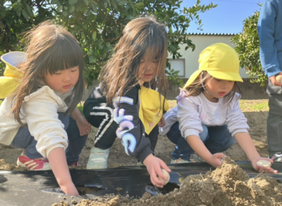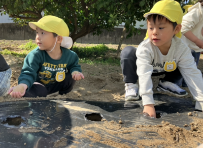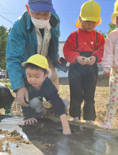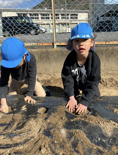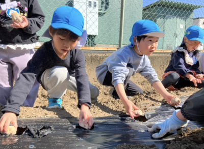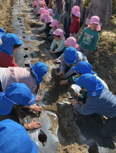 大きいクラスでじゃがいもの苗植えをしました👐