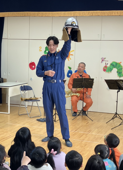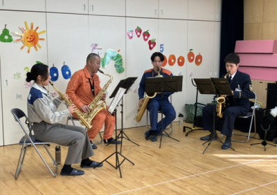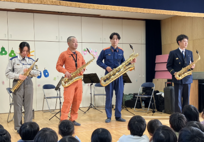 岐阜市消防音楽隊のサックス奏者4名が来園してくださいました😌