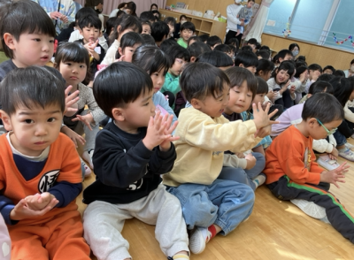 演奏会も後半になって、子どもたちは知っている曲の手遊びをしたり、『さんぽ』の曲で足踏みをしたり全身を動かして楽しみました🎶