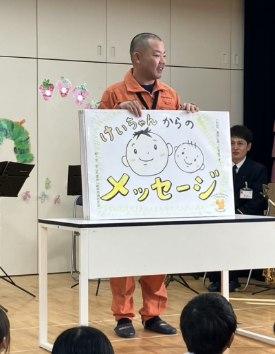 次に実際にあったお話の紙芝居『けいちゃんからのメッセージ』を見ました。