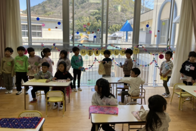 あっという間に楽しい給食が終わり、続いては在園児から卒園児へ感謝のプレゼントを渡しました。
