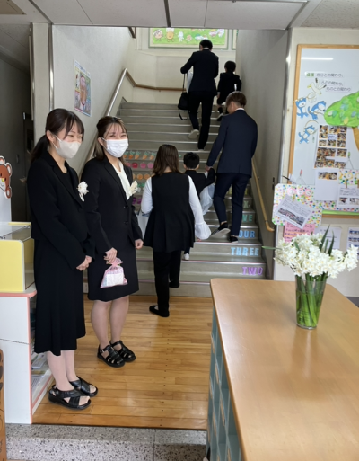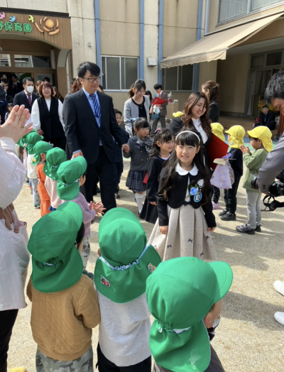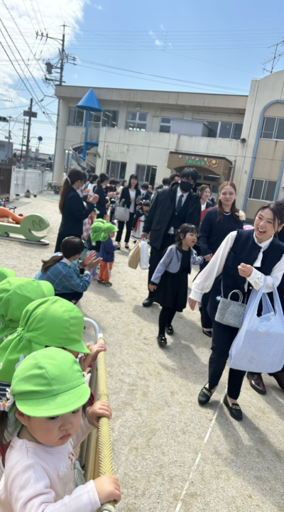 式が終わったら、園庭に小さいクラスで作った花道ができていました🌸