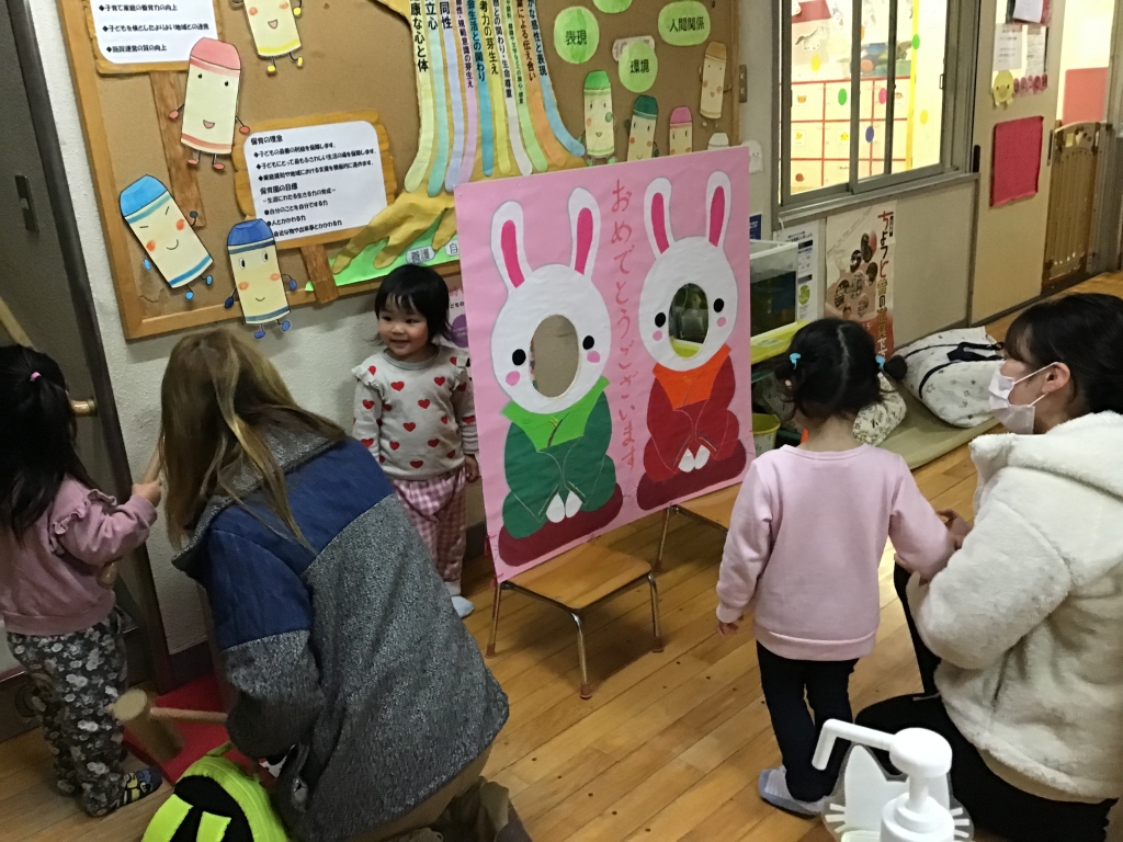 今年も園長先生手作りの今年の干支の顔はめパネルが登場しました🐰