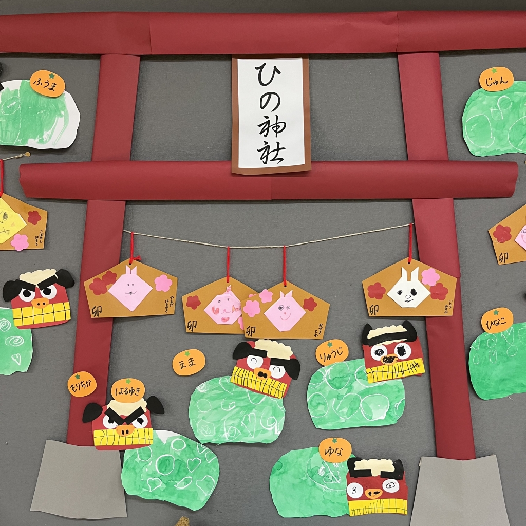 各クラスの壁面制作では、今年の干支のうさぎや獅子舞、書き初めなど・・・昨年末に新年を迎えることを楽しみにしながら制作していました✂️