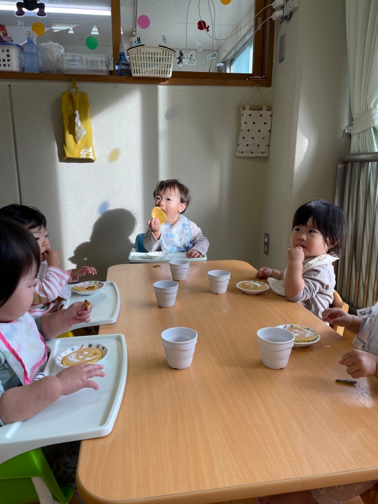 お顔消えちゃうのもったいないなー..と端っこから食べる子、甘くしよう〜♡と砂糖を塗っている子、思い思いに楽しんでいましたよ。