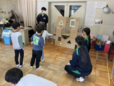 「ふれあい保育体験授業」中学生のお兄さん、お姉さんと遊んだよ、楽しかったよ
