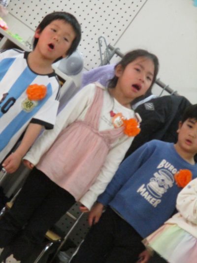 ここで、先生たちからもサプライズの歌「1年生、おめでとう」のプレゼントがありました。
