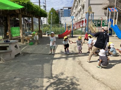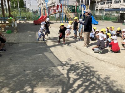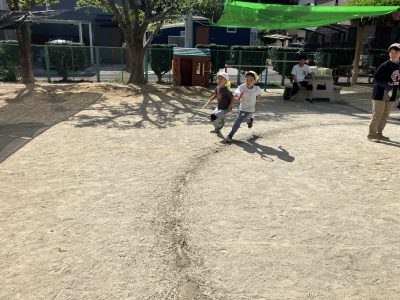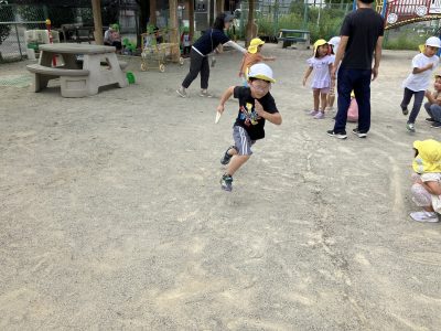 園庭ではリレー遊びを楽しんでいます。全力で風を切って走る姿がとても頼もしいです。