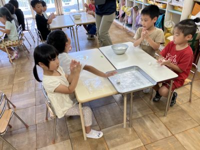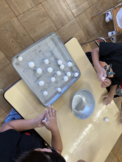 年長さんきりん組がお団子づくりにチャレンジしました。