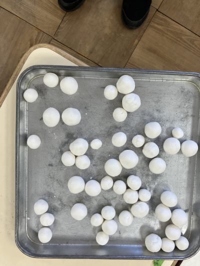 手のひらでコロコロコロコロ、日頃、粘土遊びをしているので、真ん丸のお月様のようなお団子に仕上がってきました。