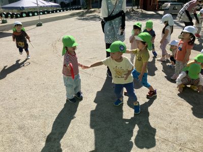 以上児クラス全員で歩く練習をしています。10/23、岐阜市科学館への遠足が今から楽しみです。