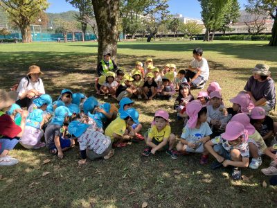 気候も涼しくなり、やっと秋がやって来たという感じです。子どもたちは園庭や野一色公園で秋を感じながら
