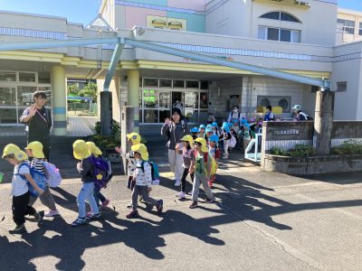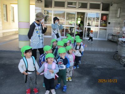 未満児クラスはいつもの野一色公園ですが、りす組さんはリュックサックを背負って特別の日です。