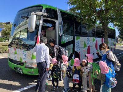 以上児クラスはとっても楽しみにしていたバス遠足です。朝からルンルン、ワクワク気分で保育園を出発しました。
