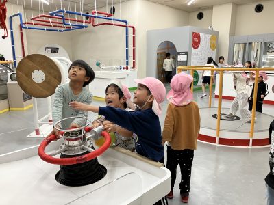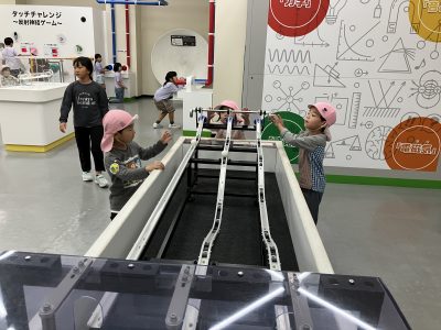 早速館内では、いつもは体験できない科学の遊びコーナーであっちへ行ったり、こっちへ行ったり、大忙しで遊びました。