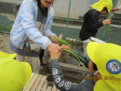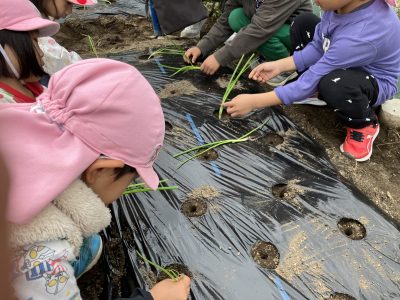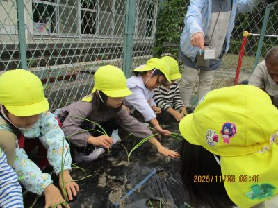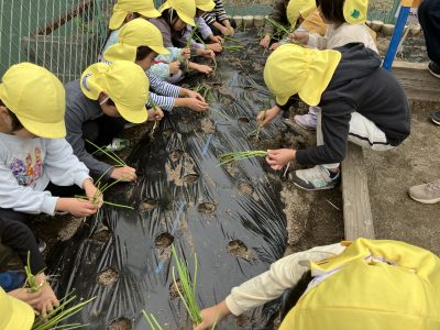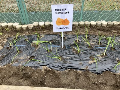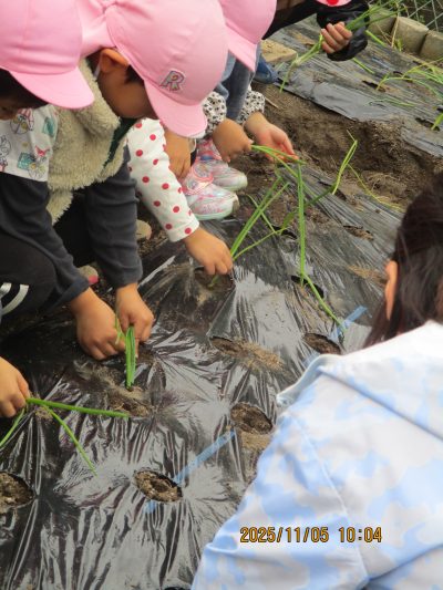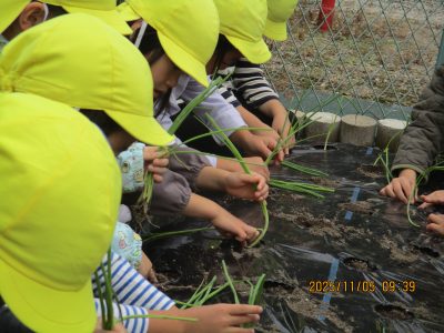 11月初旬、保育園では毎年この時期にたまねぎの苗植えを行っています。今年の5月も大きく育った玉ねぎを100個