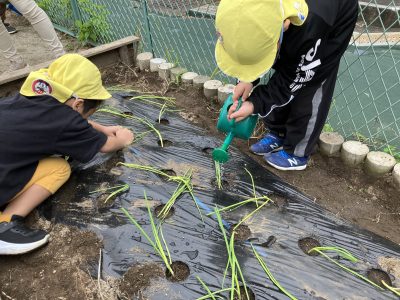 「たまねぎさん、大きくなってね」と声をかけている子もいました。