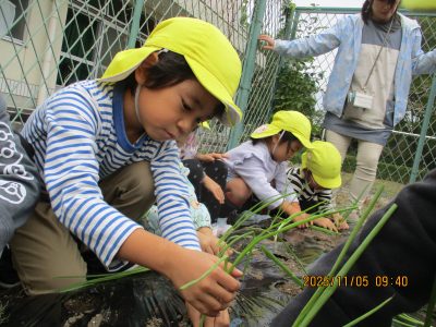 収穫は、きりん組さんが卒園して小学校に入ってからですが、とても楽しみにしていました。