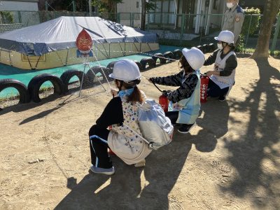 10:15、保育園の中で非常ベルが鳴り響きました。「訓練火災、訓練火災、只今給食室より火災が発生しました。」