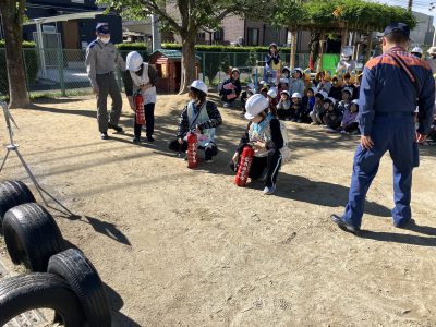 10:15、保育園の中で非常ベルが鳴り響きました。「訓練火災、訓練火災、只今給食室より火災が発生しました。」