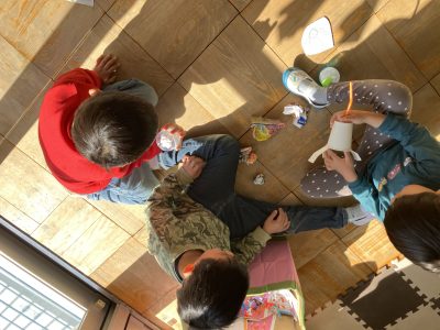 各クラスでは、毎日その準備を楽しんでいます。きりん組さんは夏まつりではお化け屋敷をしました。