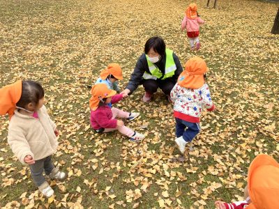 先生と手をつないでお散歩したり、葉っぱを集めて「お誕生日おめでと~!」と空に投げ上げたりと、