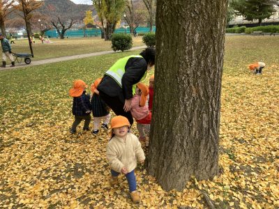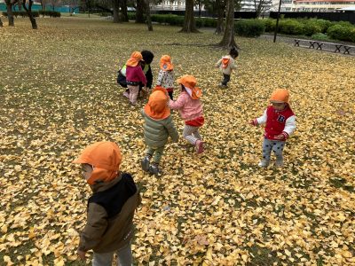 12月に入り、保育園のお隣の野一色公園の景色が変わってきました。冷たい冬の風が吹くと、